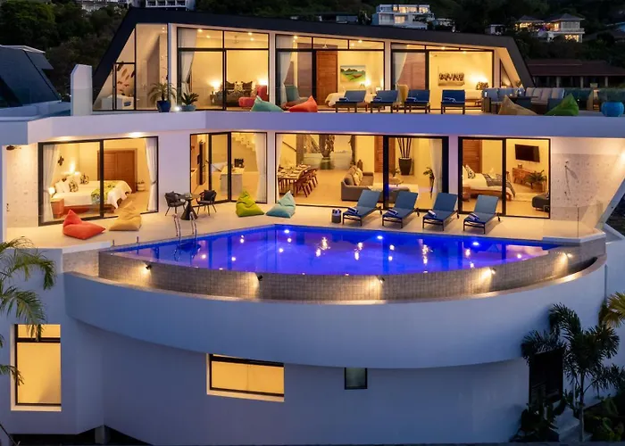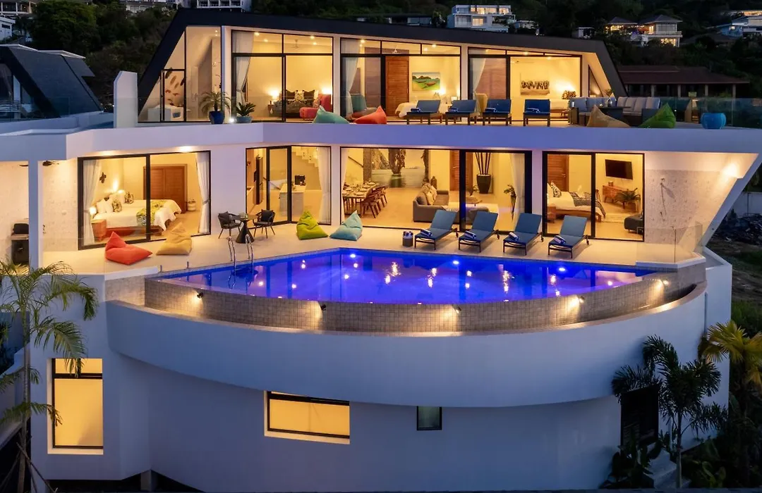 Vila Blue Pearl Villa - Brand New Luxury Awaits je umístěna 2 km od Rybářská vesnice Bophut, je 6-ložnicové ubytování s terasou. Součástí vily je i soukromý plavecký bazén, který máte k dispozici.